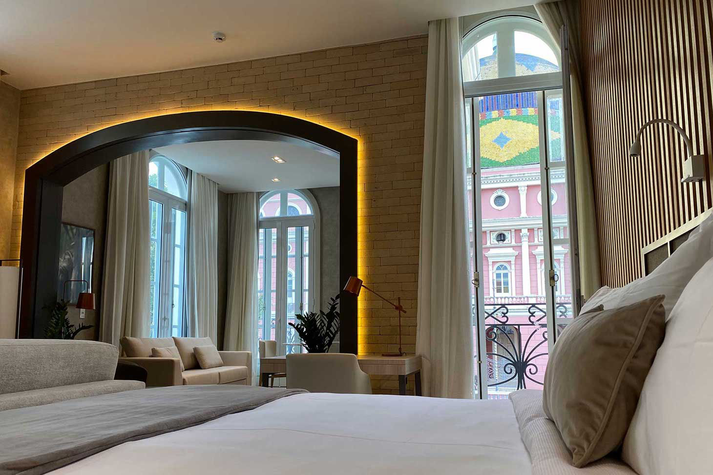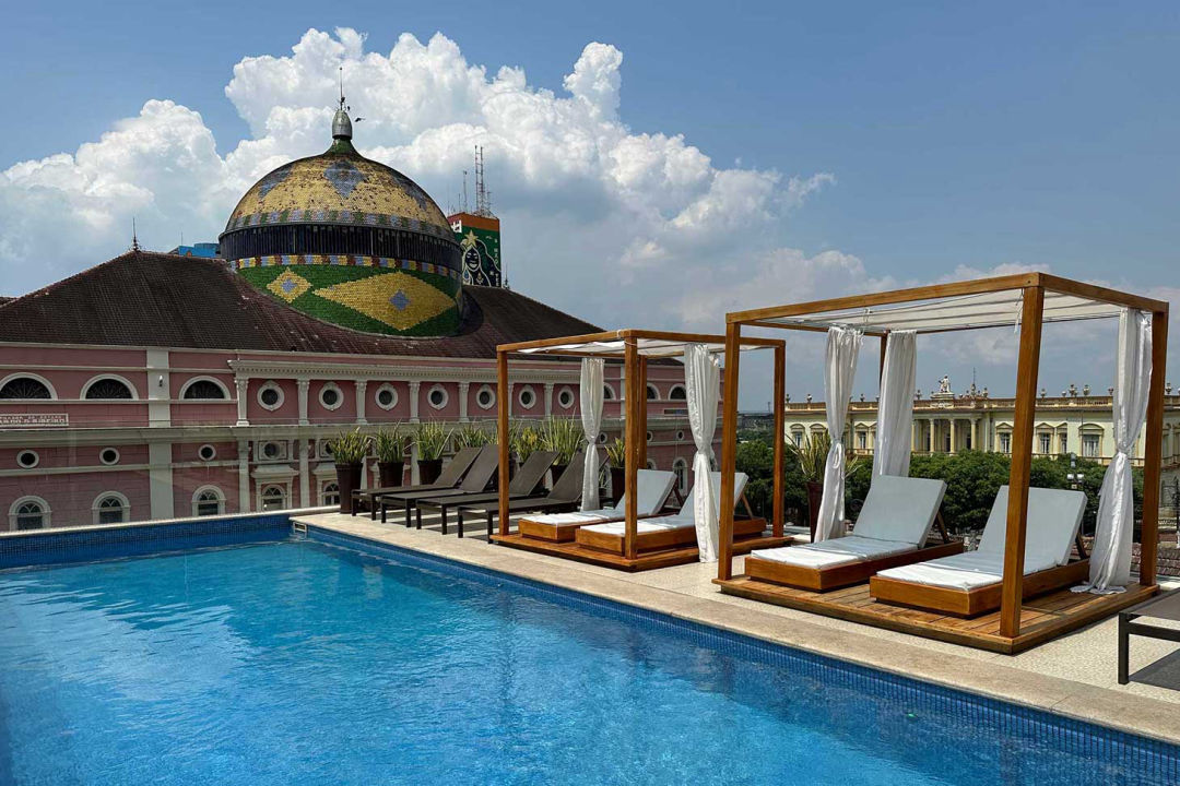 Facing the iconic Amazonas Opera House in the historic heart of Manaus, Juma Ópera offers an experience that blends 19th-century architectural charm with contemporary comfort. Set within beautifully restored heritage buildings, the hotel preserves elements of the Amazonian Belle Époque while welcoming guests with spacious interiors, unique décor, and suites that, in some cases, open directly to stunning views of the Opera House.
